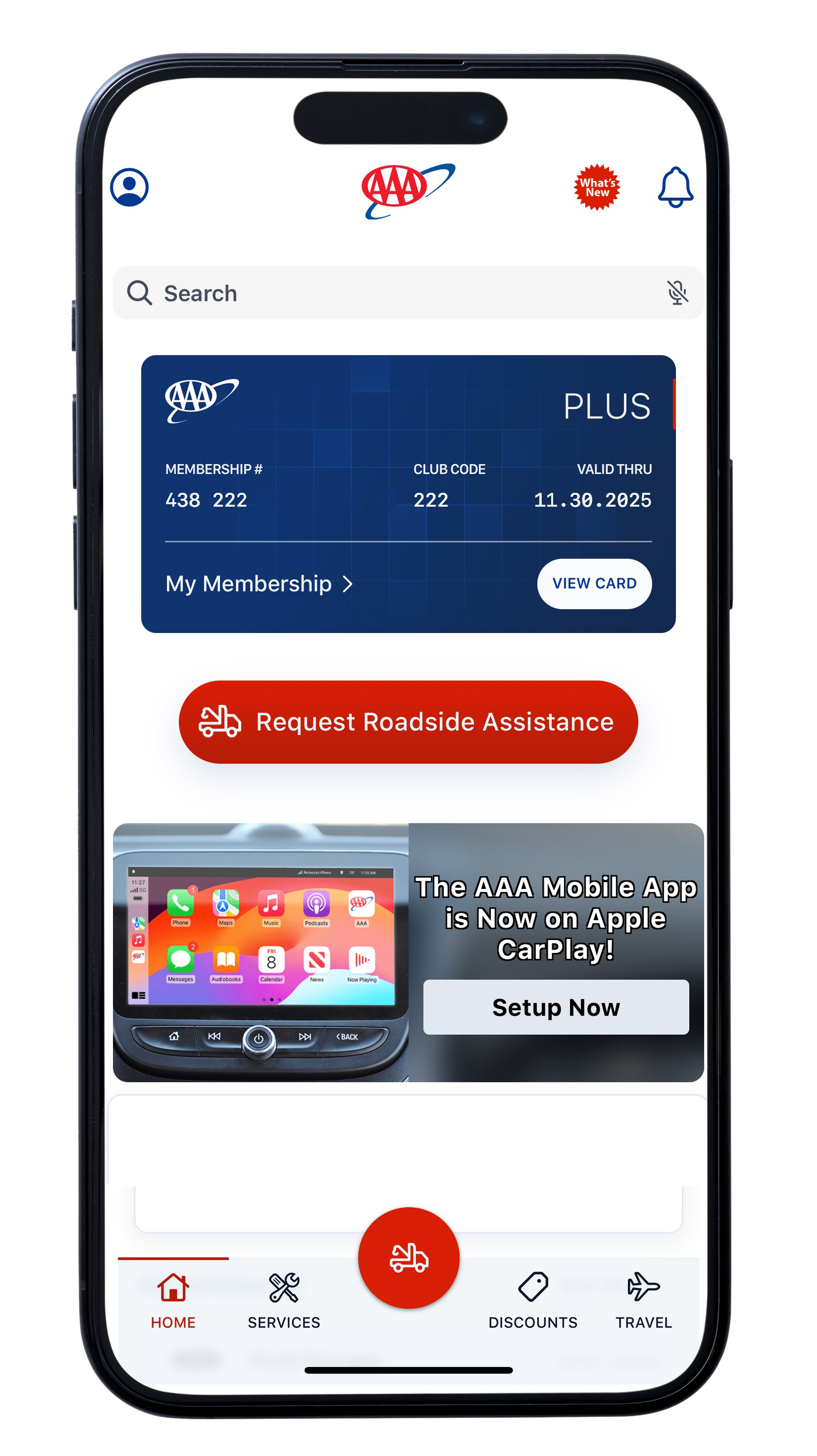 From the main screen, you can easily access and view your digital AAA membership card, allowing you to present it directly from your mobile device whenever you need roadside assistance, discounts, or access to member-exclusive services.