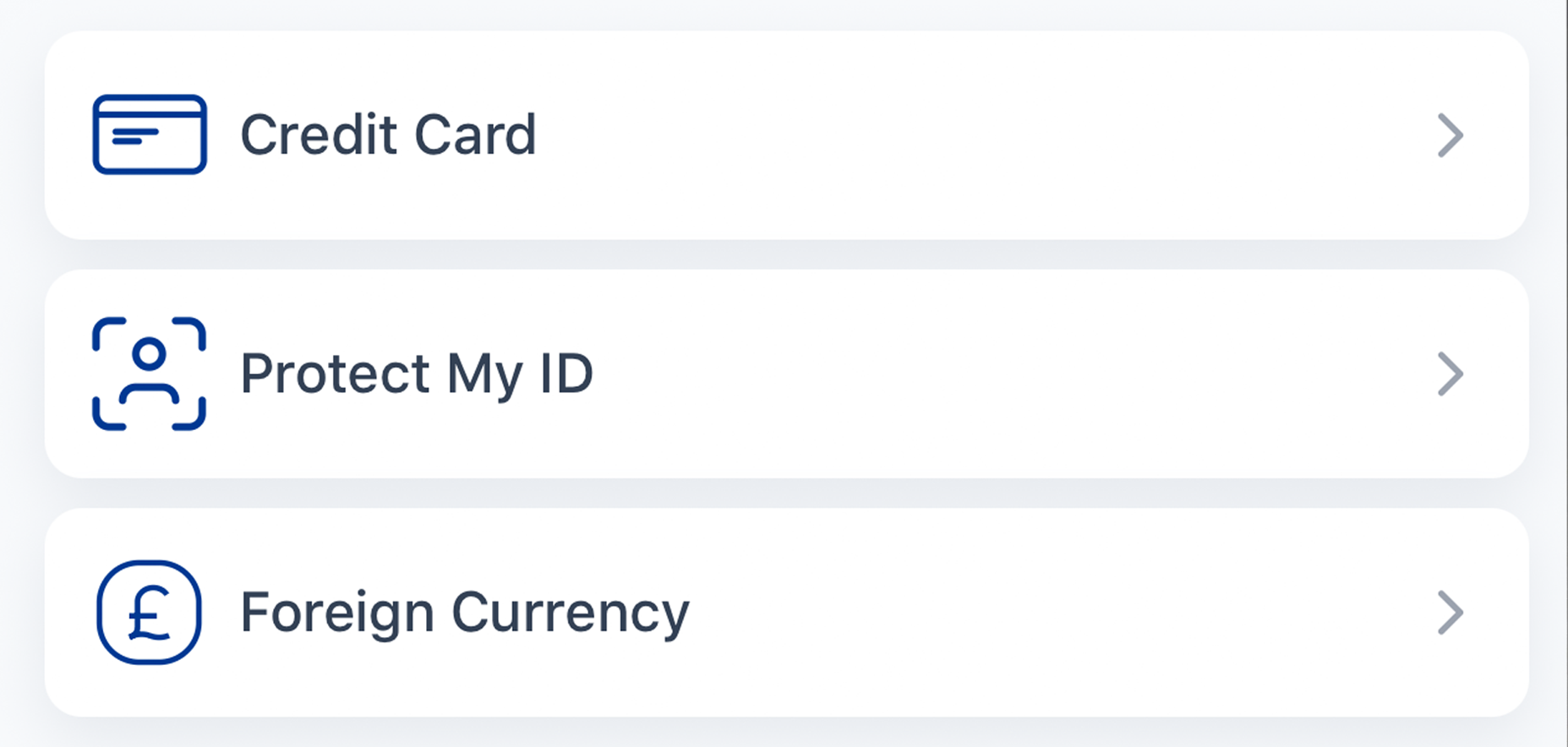 Take care of your finances—access your credit card, safeguard your identity with ProtectMyID®, and order foreign currency. |