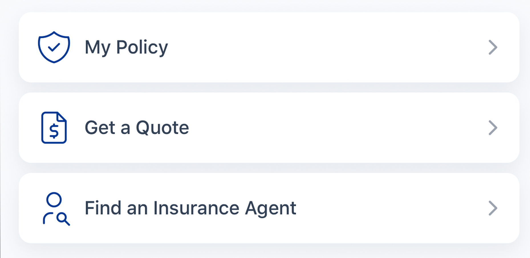 Manage your insurance with ease-view your policy, request a quote, or connect with an agent. |